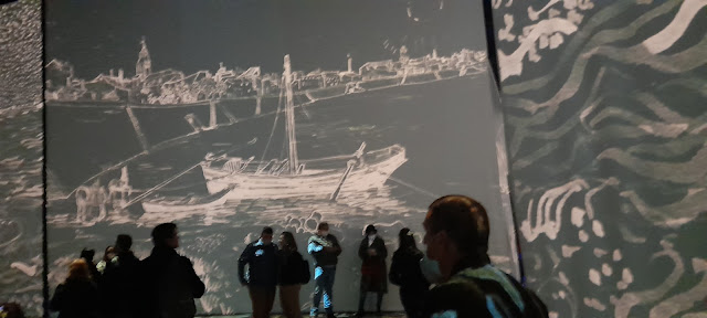 Para inmersiva me faltó, pero es cierto que una exposición tradicional sería muy difícil reunir las 200 obras que aquí se recorren. Las mismas forman parte de prestigiosas colecciones de distintos museos alrededor del mundo* y seria imposible coincidir físicamente, en el mismo lugar y al mismo tiempo. Eso sin contar los costos de seguro y transporte que una movida así demandaría. También es cierto que allí se exponen los cuadros y aquí se ven las proyecciones.